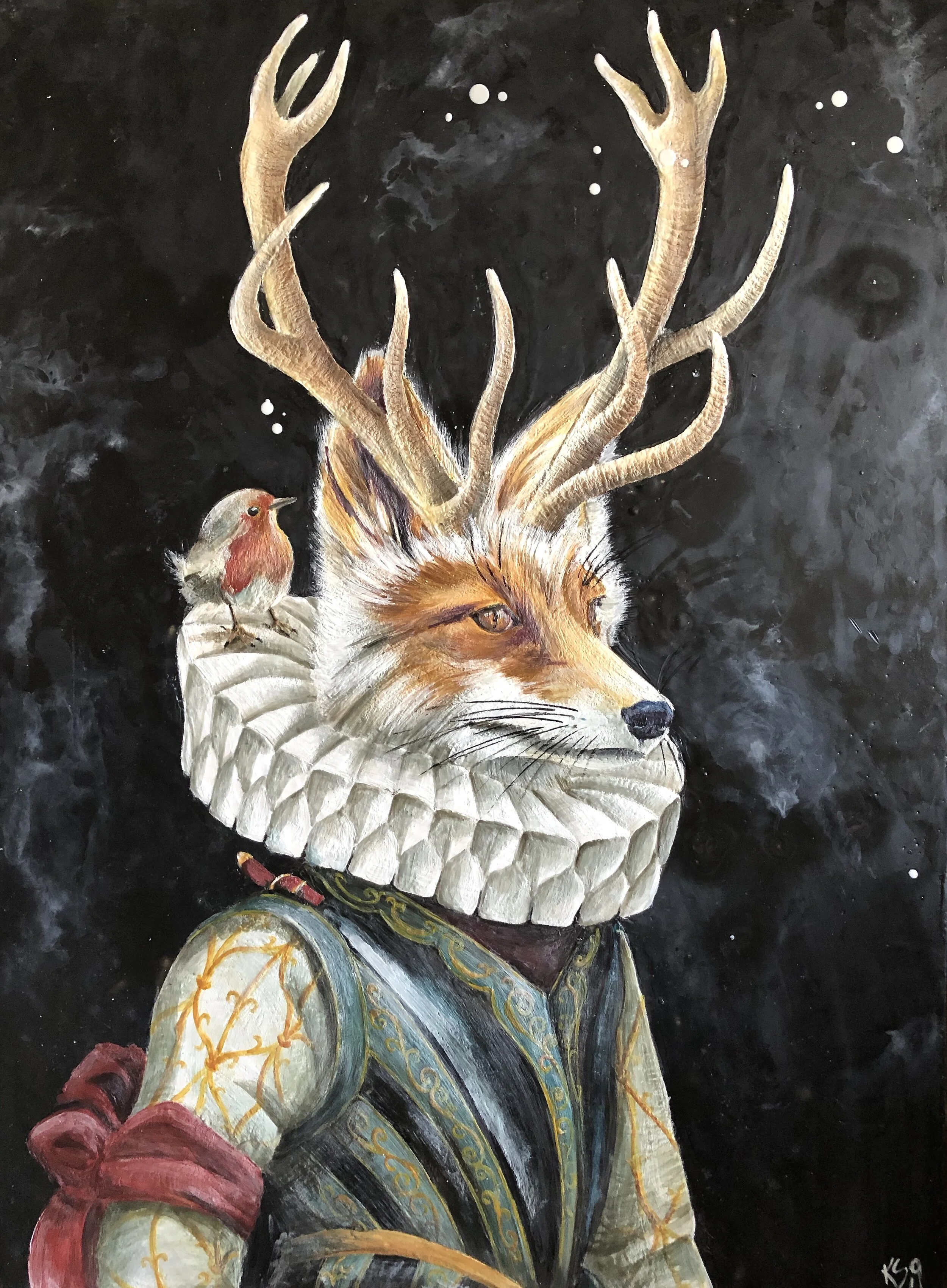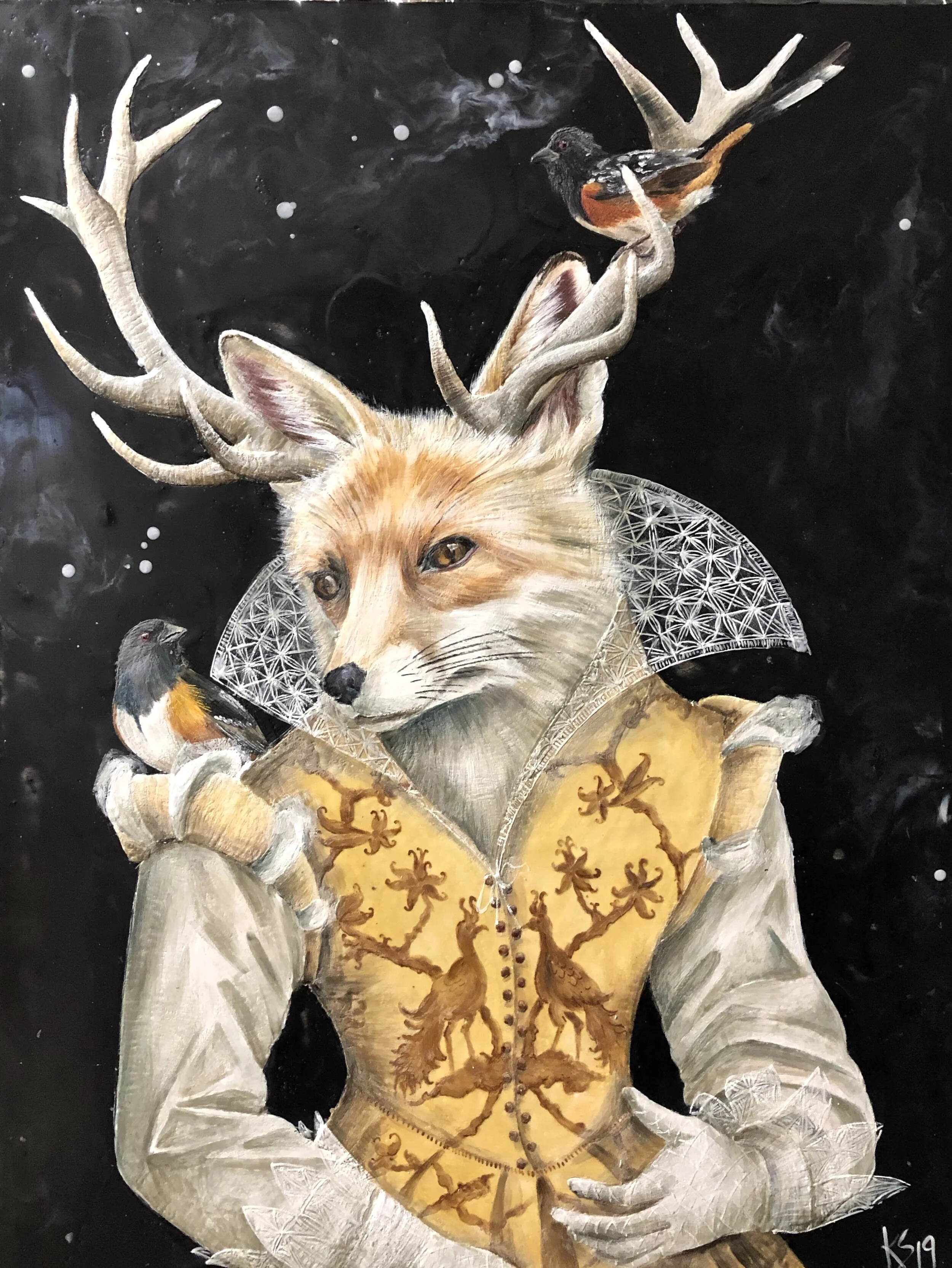The Antlered Vixen 30"x 40" 2017 SOLD